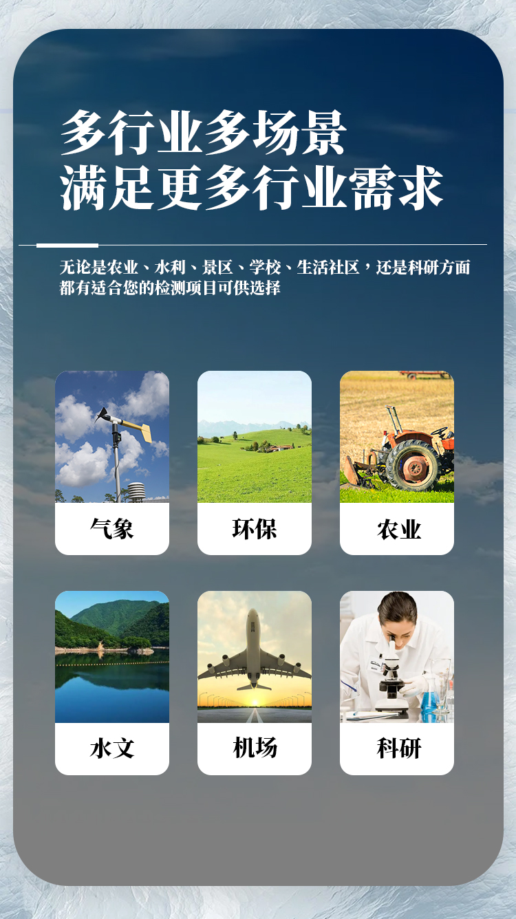 該設備創新性的采用十二要素一體式傳感器,可對風速、風向、溫度、濕度、氣壓、光學雨量、pm2.5、pm10、CO、NO2、SO2、O3等氣象要素進行實時觀測,可實現戶外氣象參數24小時連續在線監測,通過數字量通訊接口將十二項參數一次性輸出給用戶。